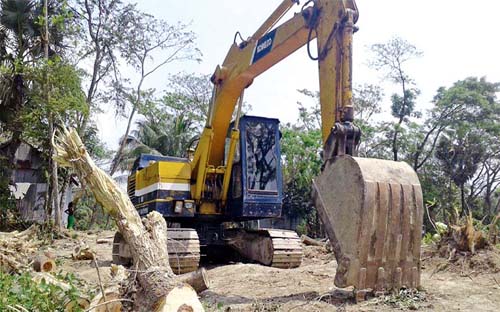 এ সময় সরকারি ব্রিজের রেলিং ভেংগে ফেলে ও রাস্তার মাটি কেটে ফেলাসহ রাস্তার দু’পাশের ছোট-বড় গাছ কেটে ফেলা হয়।