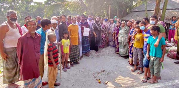 সার্ভেয়ার জয়নাল গাজী বলেন, এই এলাকার সাবেক ইউপি চেয়ারম্যান মোশারফ হোসেনের মেয়ে দিনাত জাহান মুন্নি সংখ্যালঘু পরিবারের চলাচলের কথা চিন্তা করে রাস্তটি পুনরুদ্ধারের উদ্যোগ নেয়ায় আমরা প্রায় সাড়ে ৩০০ ফিট লম্বা ও পাশে গড়ে ২২ফিট চড়া রাস্তাটি বের করে দেই। এতে মুন্নির পরিবার জমি ও টাকা দিয়ে সহায়তা করেন।