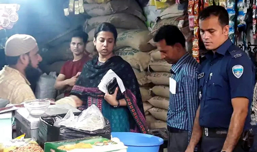 মতলব দক্ষিণ উপজেলা সদরের বাজারে ভেজাল বিরোধী অভিযানে বিভিন্ন ব্যবসা প্রতিষ্ঠানে সাড়ে ৭ হাজার টাকা জরিমানা আদায় করেছেন ভ্রাম্যমাণ আদালত। গতকাল সোমবার দুপুরে উপজেলা সহকারী কমিশনার (ভূমি) শারমিন আক্তার অভিযানের নেতৃত্ব দেন। পণ্যে পাটজাত মোড়কের বাধ্যতামূলক ব্যবহার আইন ২০১০ এবং ধান, চাল, গম, ভূট্টা, সার, মরিচ, মোড়কীকরণে পাটজাত মোড়কের ব্যবহার নিশ্চিতকরণের লক্ষ্যে আইন ও বিধি মোতাবেক আইন অমান্যকারী প্রতিষ্ঠানের বিরুদ্ধে ভ্রাম্যমাণ আদালত পরিচালিত হয়।
