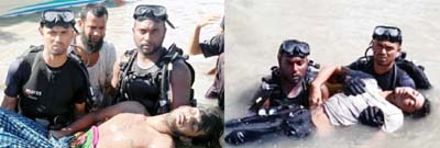 চাঁদপুর নৌ ফায়ার সার্ভিস ও সিভিল ডিফেন্স স্টেশনের ডুবুরি লিডার প্রনব বড়ুয়া বলেন, দুপুরে সংবাদ পেয়ে তাৎক্ষণিক আমরা ঘটনাস্থলে উপস্থিত হই। নৌ পুলিশ ও কোস্টগার্ড স্টেশনের ডুবুরি প্রস্তুত না থাকায় আমিসহ আমাদের ডুবুরি রাজিব হোসেন ও হাফিজুর রহমানের সহযোগিতায় দুই শিক্ষার্থীদের মরদেহ উদ্ধার করতে সক্ষম হই। পরে দুই মরদেহ নৌ পুলিশের কাছে হস্তান্তর করা হয়।