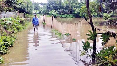 বৃষ্টির পানিতে সয়লাব হয়ে যাওয়ায় গ্রামের সড়কের ওপর দিয়েও পানি প্রবাহিত হচ্ছে। এসব এলাকার মাছের ঘেরও তলিয়ে গেছে।