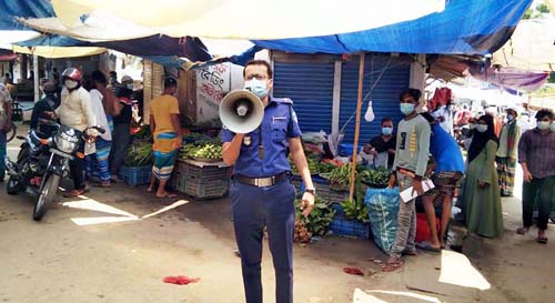 করোনা ভাইরাস মহামারীর দ্বিতীয় ঢেউ মোকাবিলায় শুরু হওয়া লকডাউনে কঠোর অবস্থানে রয়েছে পুলিশ। দেশজুড়ে আট দিনের কঠোর এই লকডাউন শুরু হয়েছে গত ১৪ এপ্রিল থেকে। জনগণকে লকডাউন মানাতে গতকাল রোববারও যথেষ্ট তৎপর ছিল অফিসার ইনচার্জ মুহাম্মদ শাহজাহান কামালের নেতৃত্বে আইন-শৃঙ্খলা বাহিনী।