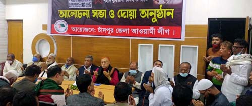 শহীদ বুদ্ধিজীবী দিবস উপলক্ষে চাঁদপুর জেলা আওয়ামী লীগের আলোচনা সভা ও দোয়া অনুষ্ঠিত হয়েছে। মঙ্গলবার (১৪ ডিসেম্বর) বিকেলে জেলা আওয়ামী লীগ কার্যালয়ে দোয়া পূর্ব আলোচনা সভায় সভাপতিত্ব করেন জেলা আওয়ামী লীগের সভাপতি নাছির উদ্দিন আহমেদ।
