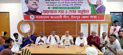 প্রধানমন্ত্রী শেখ হাসিনার ৪৩তম স্বদেশ প্রত্যাবর্তন দিবস উপলক্ষে চাঁদপুর জেলা আওয়ামী লীগের আয়োজনে আলোচনা সভা ও দোয়া অনুষ্ঠিত হয়েছে। বুধবার (১৭ মে) বিকেলে জেলা আওয়ামী লীগের কার্যালয়ে সভায় সভাপতির বক্তব্য রাখেন জেলা আওয়ামী লীগের সভাপতি নাছির উদ্দিন আহমেদ।