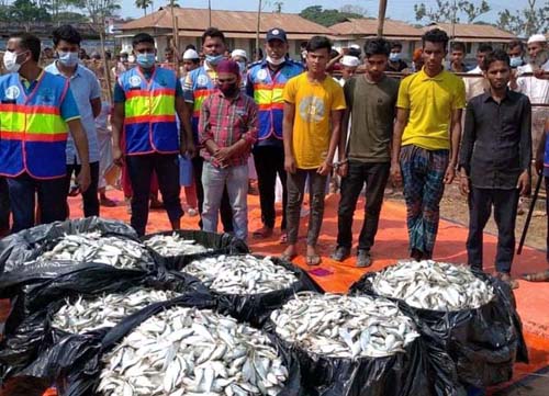 চাঁদপুর নৌ-পুলিশ সুপার মো. কামরুজ্জামান ও মৎস্য কর্মকর্তার উপস্থিতিতে জব্দকৃত মাছগুলো স্থানীয় এতিমখানা এবং অসহায়দের মাঝে বিতরণ করা হয়েছে।