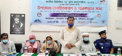 হাইমচর উপজেলা স্বাস্থ্য কমপ্লেক্স মিলানয়তনে জাতীয় ভিটামিন ‘এ’ প্লাস ক্যাম্পেইন অবহিতকরণ ও পরিকল্পনা সভা অনুষ্ঠিত হয়েছে। মঙ্গলবার (১ জুন) সকাল ১১টায় উপজেলা স্বাস্থ্য ও পরিবার পরিকল্পনা কর্মকর্তা ডা. মো. বেলায়েত হোসেনের সভাপতিত্বে ও এমটি ইপিআই মো. বিল্লাল হোসেনের পরিচালনায় প্রধান অতিথি হিসেবে বক্তব্য রাখেন উপজেলা পরিষদ চেয়ারম্যান নূর হোসেন পাটওয়ারী।