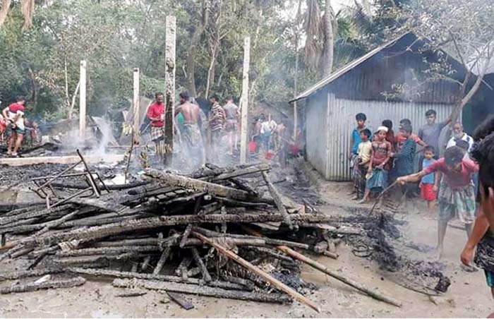 স্থানীয় ইউপি সদস্য আব্দুল মালেক জানান, এদিন বিকালে খোরশেদ আলমের বসতঘর থেকে বৈদ্যুতিক সর্ট-সার্কিটের মাধ্যমে আগুনের সূত্রপাত ঘটে। মুহূর্তেই আগুন তিনটি বসতঘর ও দু’টি রান্নাঘরে ছড়িয়ে পড়ে।