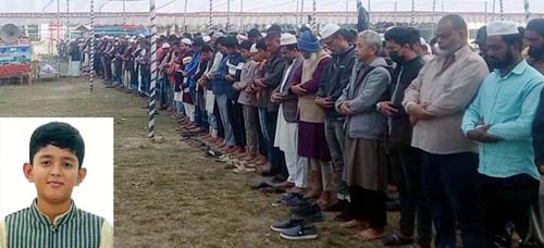হাজীগঞ্জ পৌরসভার ৭নং ওয়ার্ডের সাবেক কাউন্সিলর কাজী মনির হোসেন সপরিবারে সড়ক দুর্ঘটনায় নিহত ছেলে মো. তাহিম হাসান ফাহিমের (১২) দাফন সম্পন্ন হয়েছে। রোববার (১২ জানুয়ারি) সকালে হাজীগঞ্জ সরকারি মডেল পাইলট হাই স্কুল এন্ড কলেজ মাঠে জানাযা শেষে পারিবারিক কবরস্থানে তাকে দাফন করা হয়।
