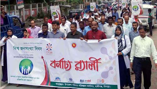 বিশ্ব জনসংখ্যা দিবস উপলক্ষে হাজীগঞ্জে বর্ণাঢ্য র্যালি ও আলোচনা সভা অনুষ্ঠিত হয়েছে। গত বৃহস্পতিবার সকালে র্যালিটি উপজেলা চত্বর থেকে বের হয়ে কুমিল্লা-চাঁদপুর আঞ্চলিক মহাসড়কের আলীগঞ্জ বাজারের প্রধান প্রধান সড়ক প্রদক্ষিণ করে উপজেলা হলরুমে আলোচনা সভাস্থলে গিয়ে শেষ হয়।