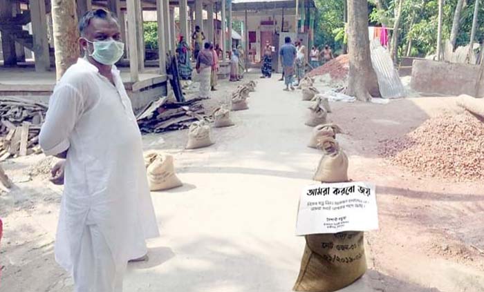 এছাড়া উপজেলা প্রশাসনের পক্ষ থেকে ওই বাড়িতে করোনা আক্রান্ত মিন্টু কর্মকারের ঘরে ৩০ কেজি চাল, ১ লিটার সয়াবিন তেল, ১ কেজি মশুর ডাল, ১ কেজি চিনি, ১ কেজি লবণ ও ৩ কেজি আলুসহ অন্যান্য খাদ্যসামগ্রী পৌঁছে দেয়া হয়।