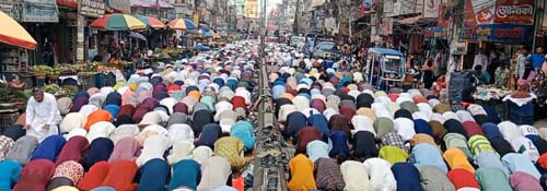 এরপর নামাজের আগ মূহুত্বে মসজিদের ভেতরে তিল ধারনের জায়গা না থাকায় ধর্মপ্রাণ মুসল্লিরা কুমিল্লা-চাঁদপুর আঞ্চলিক মহাসড়কে দাঁড়িয়ে নামাজ পড়তে দেখা যায়। নামাজ চলাকালীন সময়ে কুমিল্লা-চাঁদপুর আঞ্চলিক মহাসড়কে সকল প্রকার যানবাহন চলাচল বন্ধ হয়ে যায়।