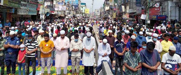 নামাজ শেষে করোনাভাইরাসের সংক্রমণ থেকে মুক্তি এবং দেশ ও জাতির সমৃদ্ধি কামনা মোনাজাতের সময় ‘আমিন, আমিন’ ধ্বনীতে আকাশ-বাতাস মুখরিত হয়ে উঠে পুরো মসজিদ এলাকা। এ সময় আল্লাহর দরবারে পানা’হ চেয়ে জুম’আতুল বিদা’র মোনাজাতে মুসল্লিদের কান্নায় আকাশ-বাতাস ভারি হয়ে উঠে।