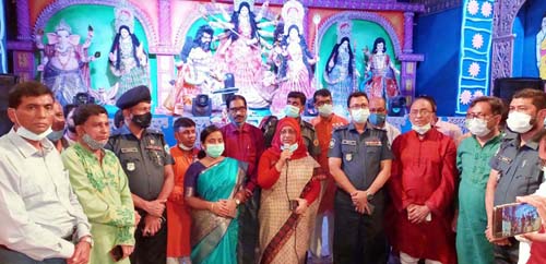 পূজামন্ডপ পরিদর্শনকালে জেলা প্রশাসক অঞ্জনা খান মজলিশ বলেন, বাংলাদেশ সাম্প্রদায়িক সম্প্রীতির দেশ। আবহমানকাল থেকে নানা জাতি-গোষ্ঠী ও ধর্মানুসারীরা পারস্পরিক সুসম্পর্ক বজায় রেখে মিলেমিশে একত্রে বসবাস এবং সাম্প্রদায়িক সম্প্রীতির ঐতিহ্য সংহত রেখে যার যার ধর্ম স্বাধীনভাবে পালন করে আসছে। আমাদের সরকার সব ধর্ম-বর্ণের মানুষ যাতে সমানভাবে তাদের সুযোগ-সুবিধা পায় এবং সবাই যেন ধর্মীয় উৎসব পালন করতে পারে, তার জন্য অঙ্গিকারাবদ্ধ। আমরা আপনাদের পাশে আছি। আপনারা নিরাপদে ও নির্বিঘ্নে নিজেদের ধর্মীয় উৎসব পালন করুন। সেখানে আমাদের সহযোগিতা অব্যাহত থাকবে।