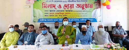 বক্তব্য শেষে পরীক্ষার্থীদের সফলতা কামনায় মিলাদ, দোয়া ও মোনাজাত পরিচালনা করেন হযরত মাদ্দাহ খাঁ (রহ.) জামে মসজিদের খতিব ও পেশ ইমাম মুফতি ফজলুল কাদের বাগদাদী। এসময় কলেজ শাখার সমন্বয়ক প্রভাষক মো. তাজুল ইসলাম, স্কুল শাখার শিক্ষক শ্যামল কৃষ্ণ সাহা, জাহাঙ্গীর আলম, রনজিৎ দাস, বলাই চাঁদ দে, হাসবুল হাসান পাটওয়ারী, রফিকুল ইসলাম খানসহ কলেজ ও স্কুল শাখার শিক্ষকরা উপস্থিত ছিলেন।
