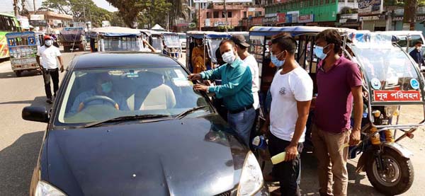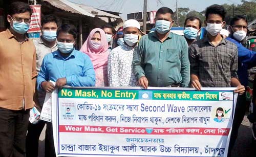 জেলা প্রশাসনের উদ্যোগে চাঁদপুরস্থ সরকারি ও বেসরকারি প্রতিষ্ঠানে মাস্ক পরিধানে গণসচেতনা সৃষ্টির অংশ হিসেবে পুরাণবাজার মধুসূদন উচ্চ বিদ ...