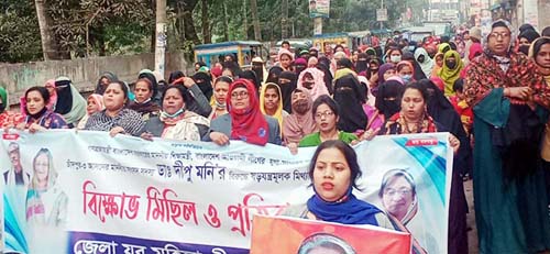 চাঁদপুর মহিলা আ.লীগ ও যুব মহিলা লীগের বিক্ষোভ মিছিল ও সমাবেশ