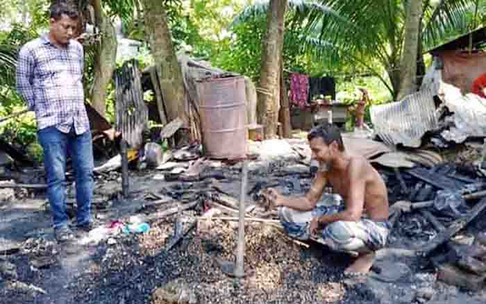 হাজীগঞ্জে আগুনে মাথা গোঁজার ঠাঁই হারালো বাদাম বিক্রেতা