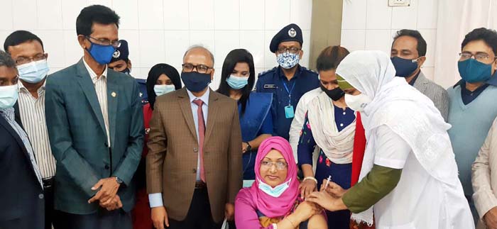 চাঁদপুরে প্রথম করোনা টিকা নিলেন জেলা প্রশাসকসহ বিশিষ্ট ব্যক্তিরা